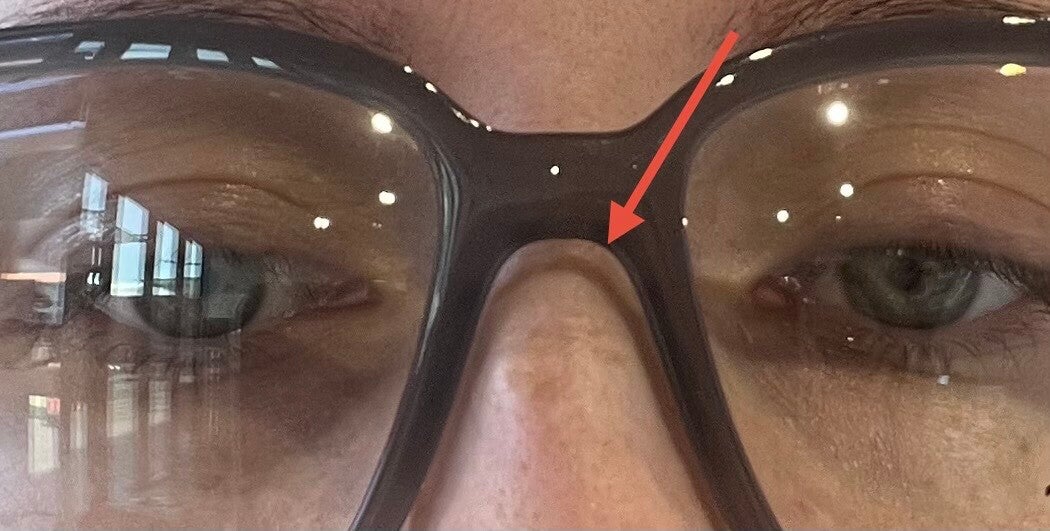 - Brwi "widać" przez szkło okularowe - gdy oprawka jest tak duża, że zachodzi nam na brwi.